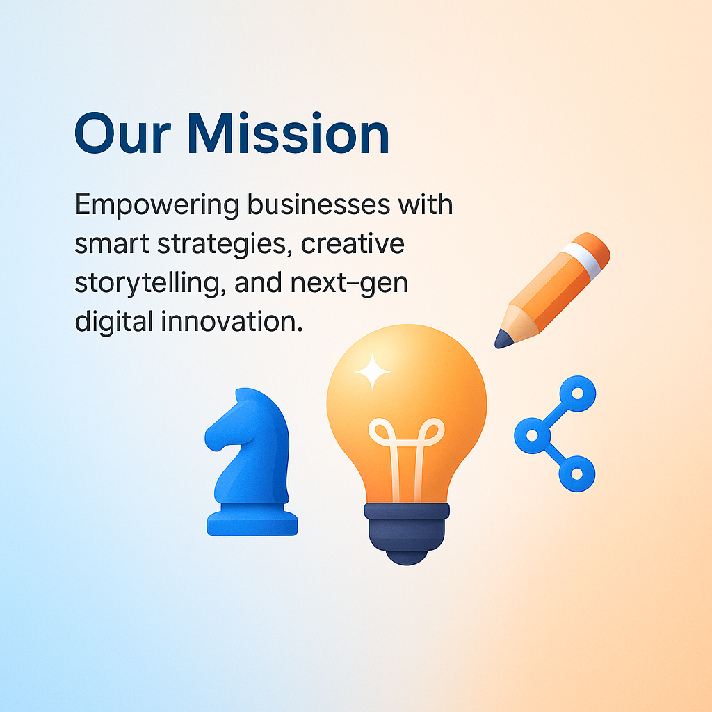 To empower businesses with smart strategies, creative storytelling, and next-gen digital innovation — ensuring every brand we work with achieves meaningful, long-term success.